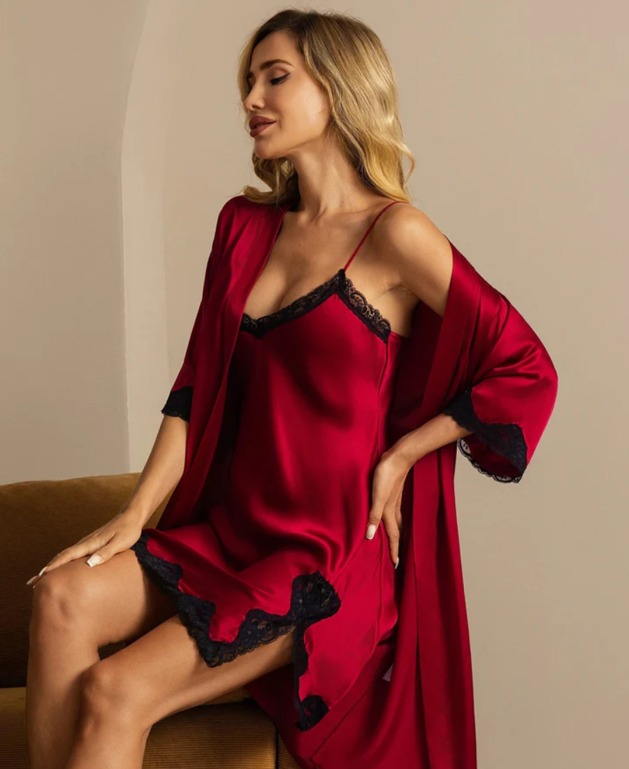 Elegant Pure Zijde Nachthemd&Kamerjas Set 2-Delig