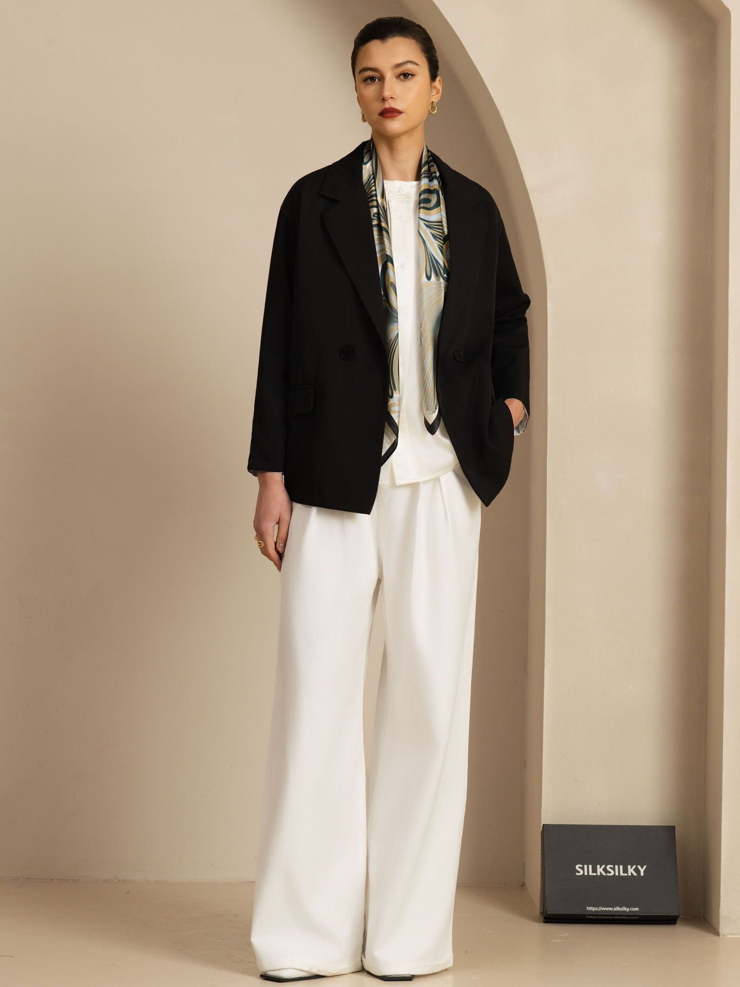 Deze sjaal van pure zijde heeft een opvallend abstract bloemenpatroon, met vloeiende waaierachtige lijnen die een dynamische en artistieke uitstraling geven. Diep groen, goud, beige en zacht blauw verweven zich tot een verfijnd kleurenpalet, waardoor de sjaal modern en luxueus aanvoelt. Het gelaagde, dynamische patroon maakt van deze sjaal een draagbaar kunstwerk en voegt persoonlijkheid toe aan elke outfit. Een donkere rand omlijnt subtiel het patroon, waardoor het ontwerp opvalt. Deze veelzijdige sjaal kan om de hals, als hoofdband, sjaal of aan een handtas gedragen worden en is geschikt voor zowel casual als formele gelegenheden.