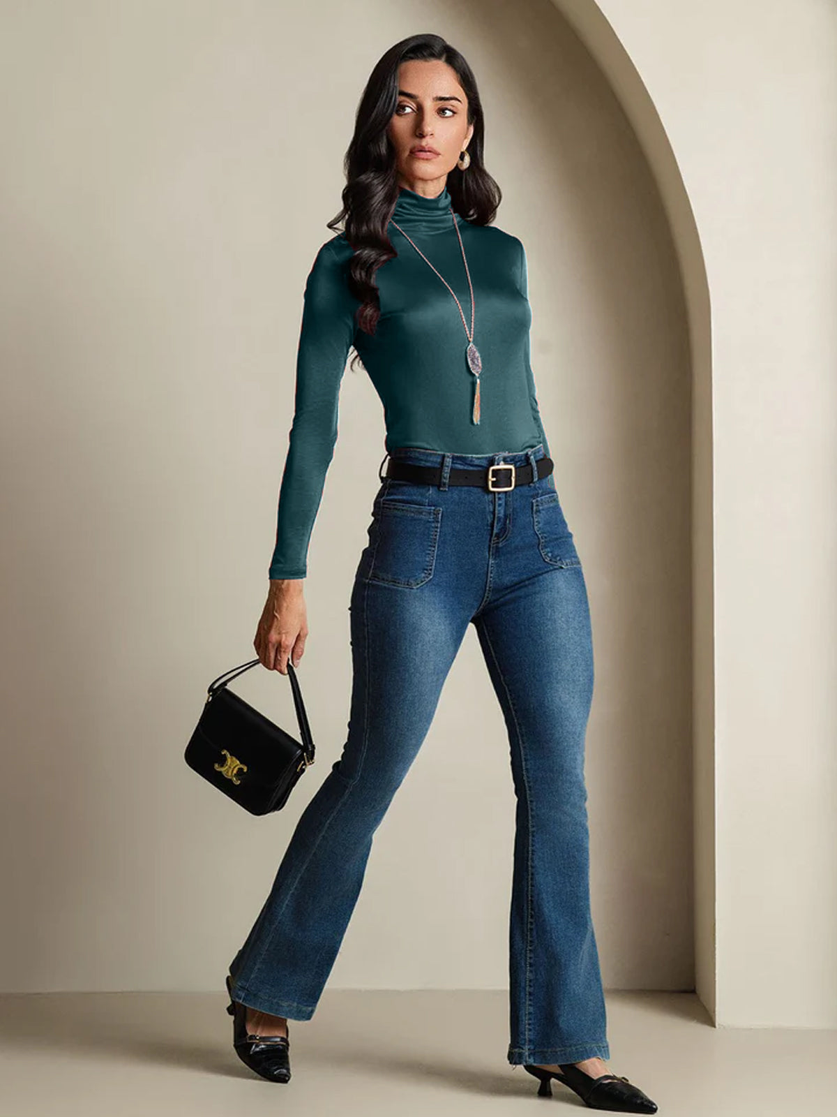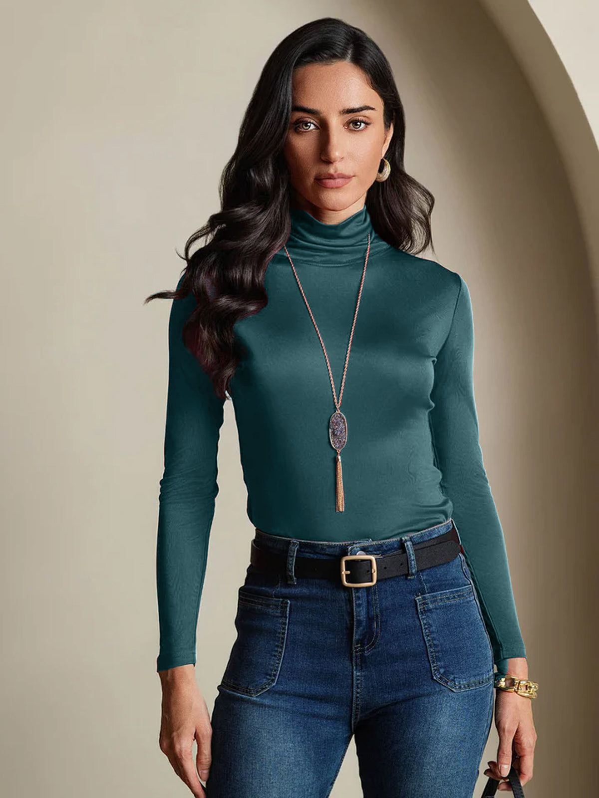 Zijdeblend Hoge Hals Lange Mouwen T-shirt